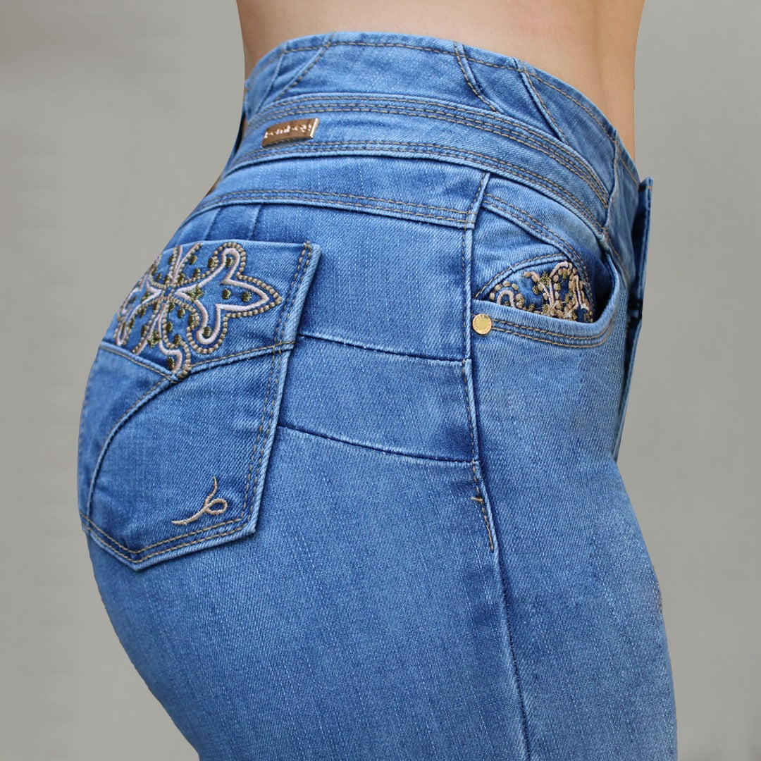 Pantalón colombiano de mezclilla push Up Oxford (Acampanado).