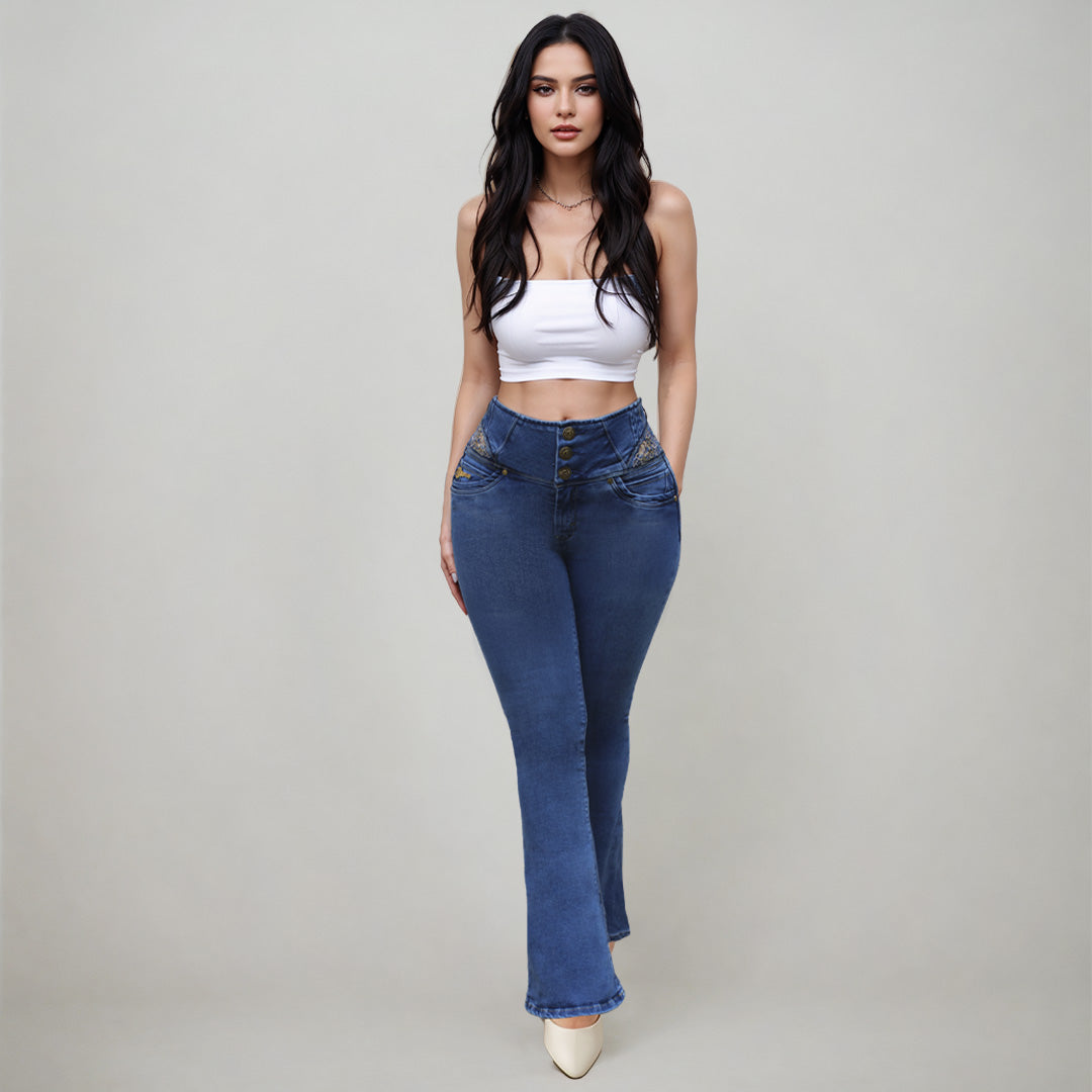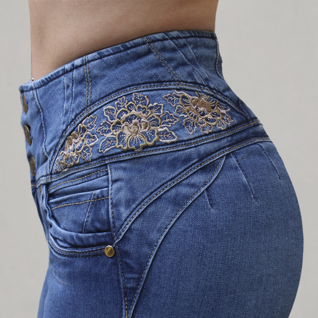 Pantalon colombiano de mezclilla push Up oxford.